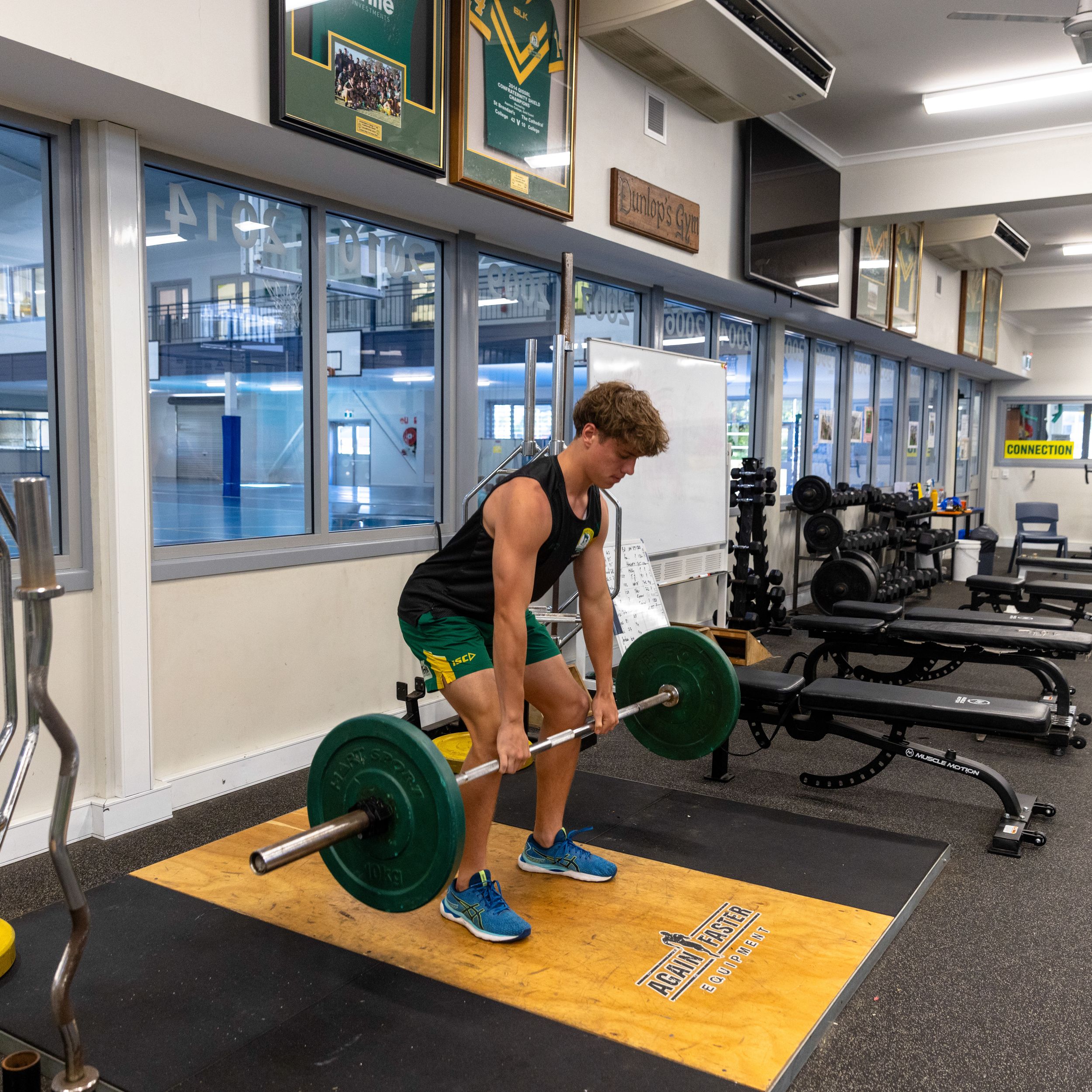 The Ambrose Treacy Centre is a multi-use venue for sporting, educational and business purposes, overlooking College sporting fields to the Mt Barmoya vista. A fully equipped gymnasium, basketball, netball, futsal, volleyball, handball and badminton courts, and space for Physical Education classes secure its sporting use, inclusive of after-hours extra-curricular activities. A boardroom, multiple classrooms, and staff offices make provision for educational use, while a mini art gallery and school archive contribute to showcasing the College and its provenance when the Centre is used for a variety of events throughout the year.