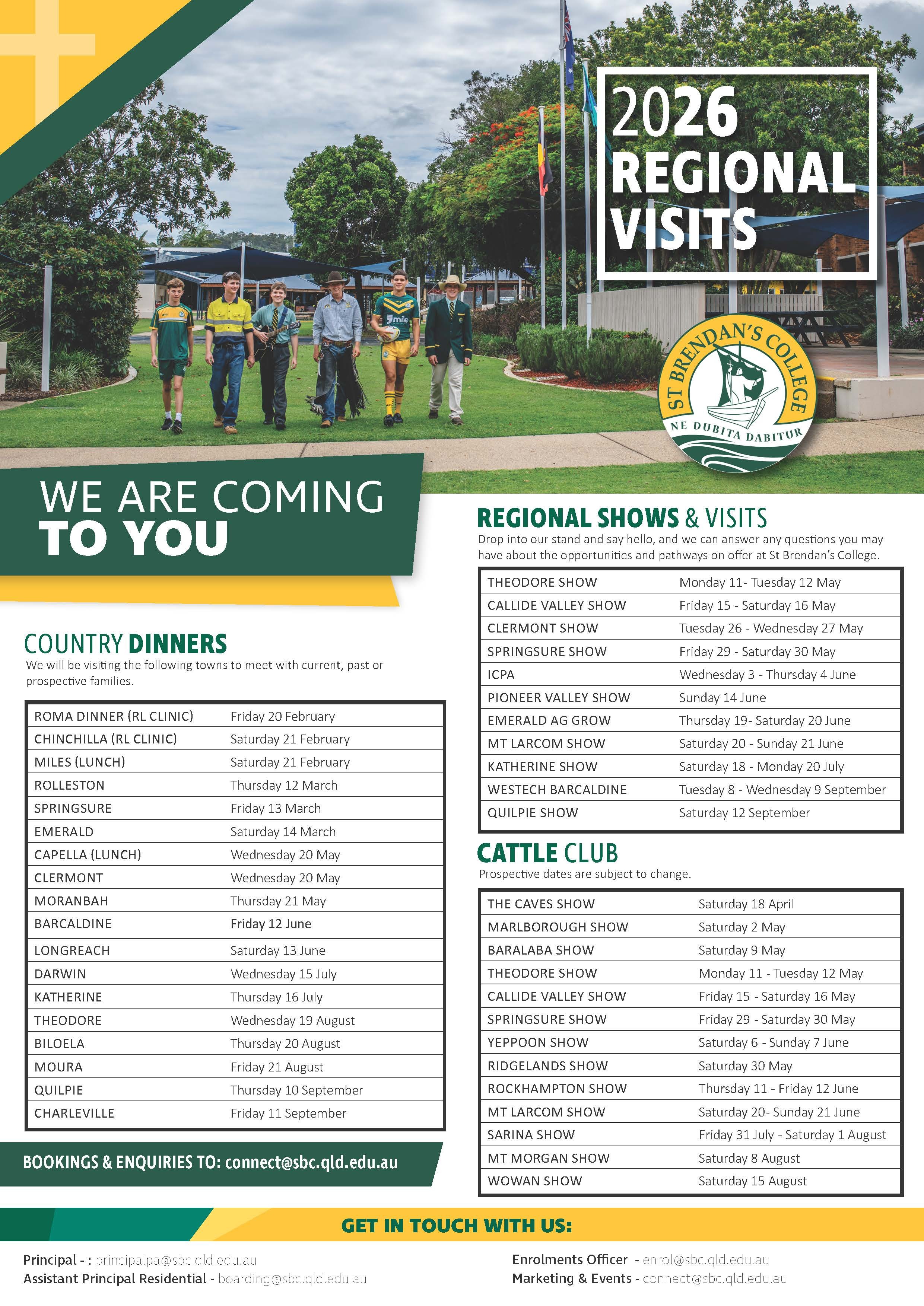 We are proud of our strong connection to regional and rural Queensland, regularly travelling to communities across the state to maintain meaningful relationships with current and prospective families. Our team hosts Country Dinners, attends major agricultural shows, and actively engages with students through our Cattle Club and rural programs.