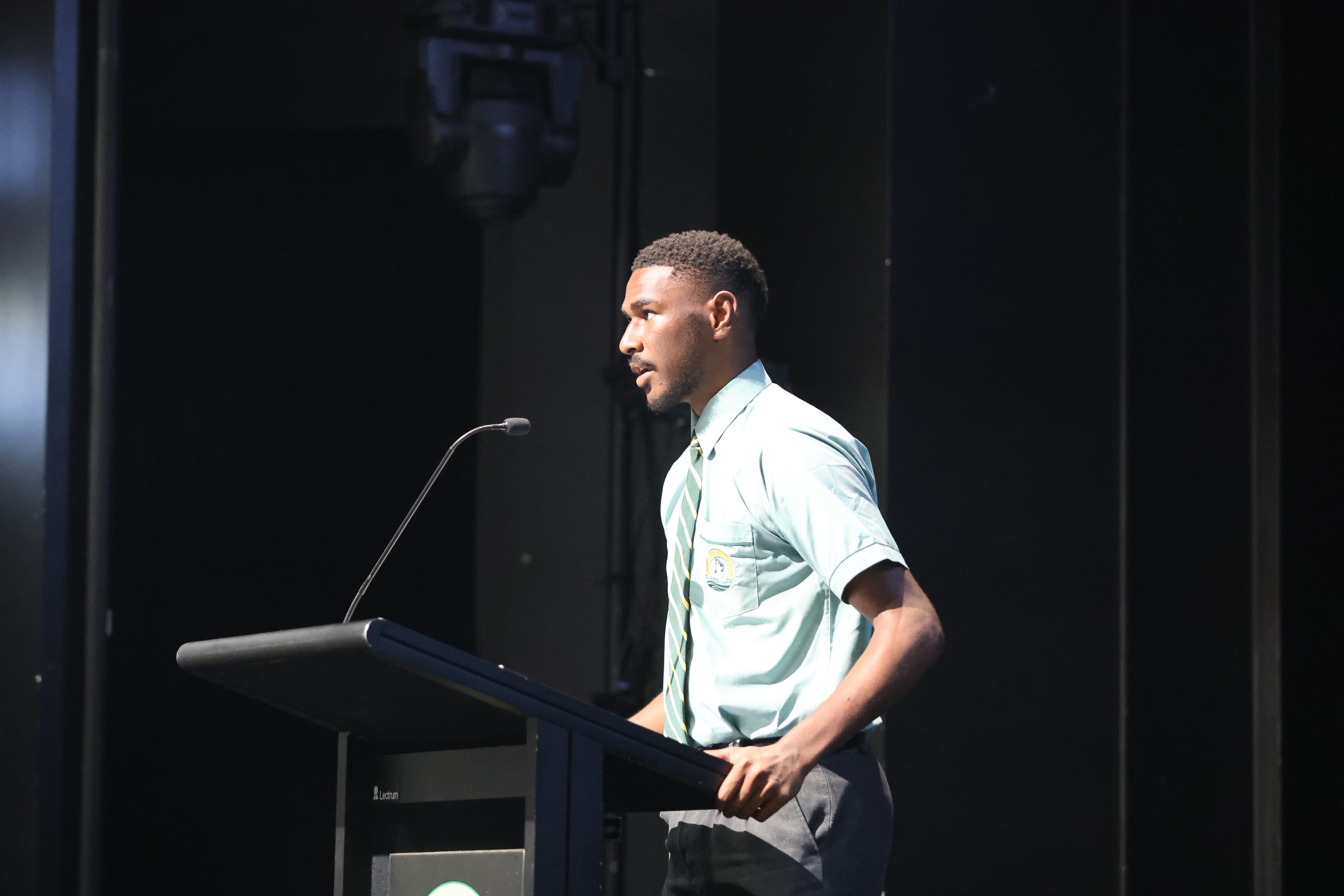Returning graduates Tjaart Van der Walt (Dux 2025) and Nate Brooks (VET Student of the Year 2025) were welcomed back to receive their official cheques and share heartfelt messages of wisdom and inspiration. Both spoke with sincerity, reflecting on their journeys and encouraging current students to strive for excellence.