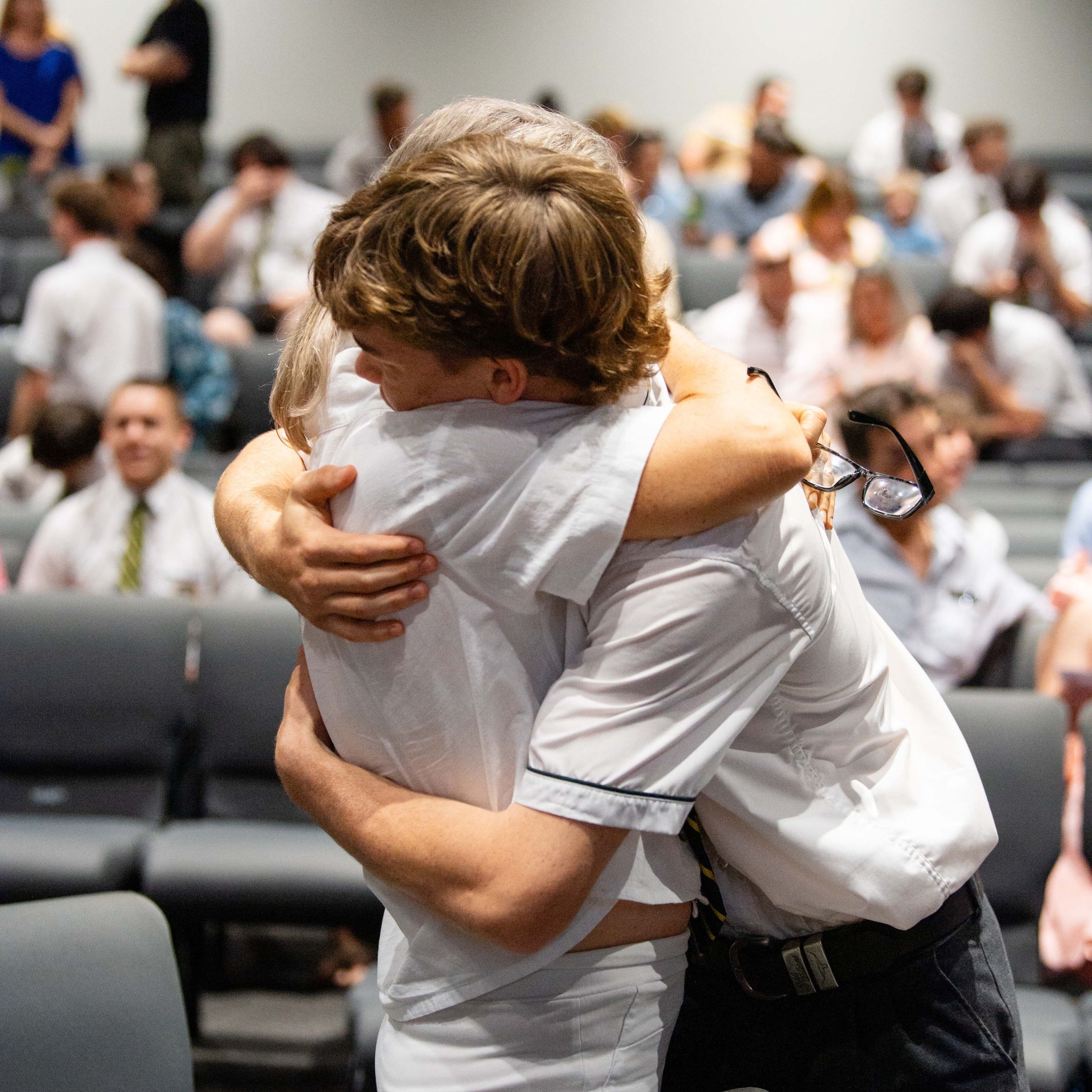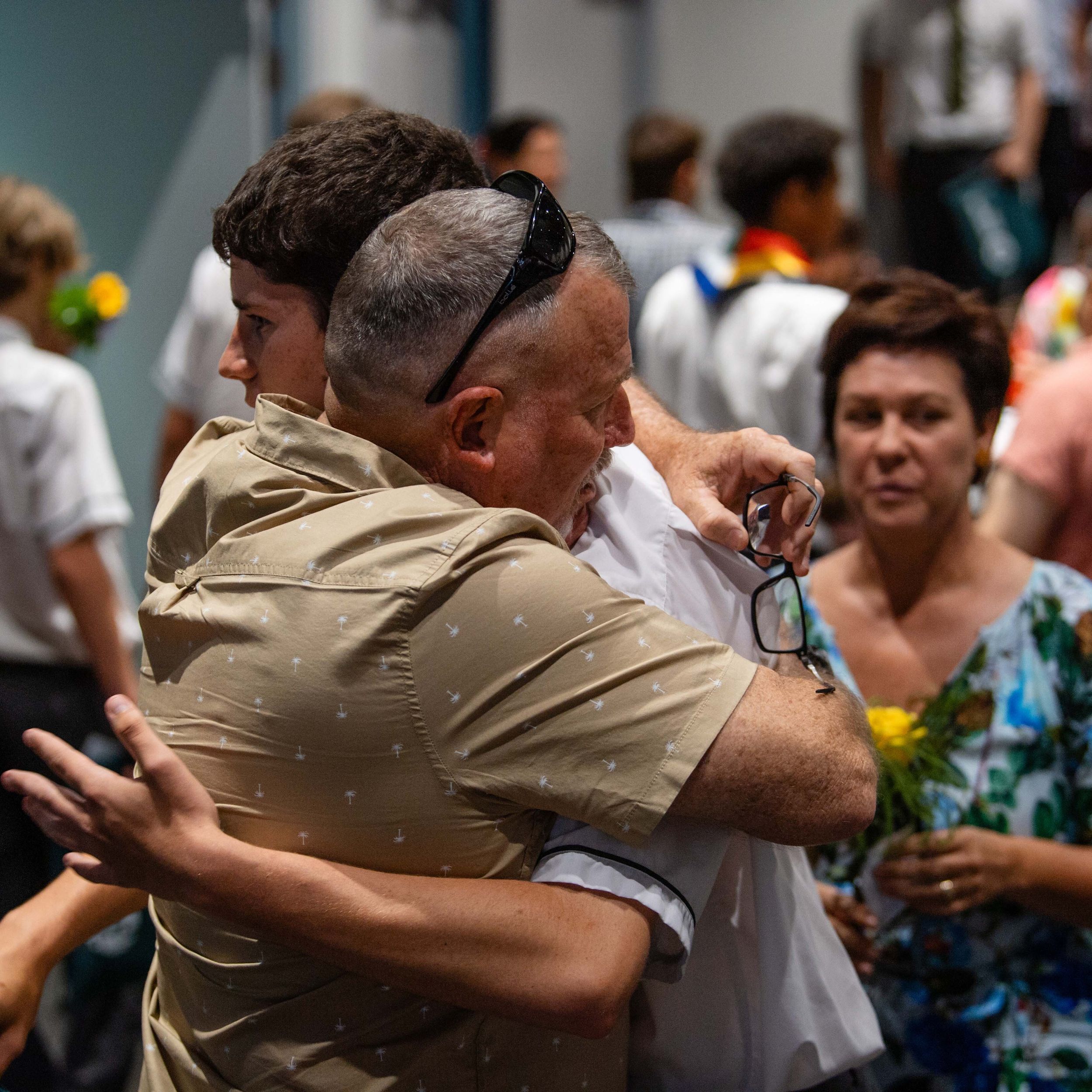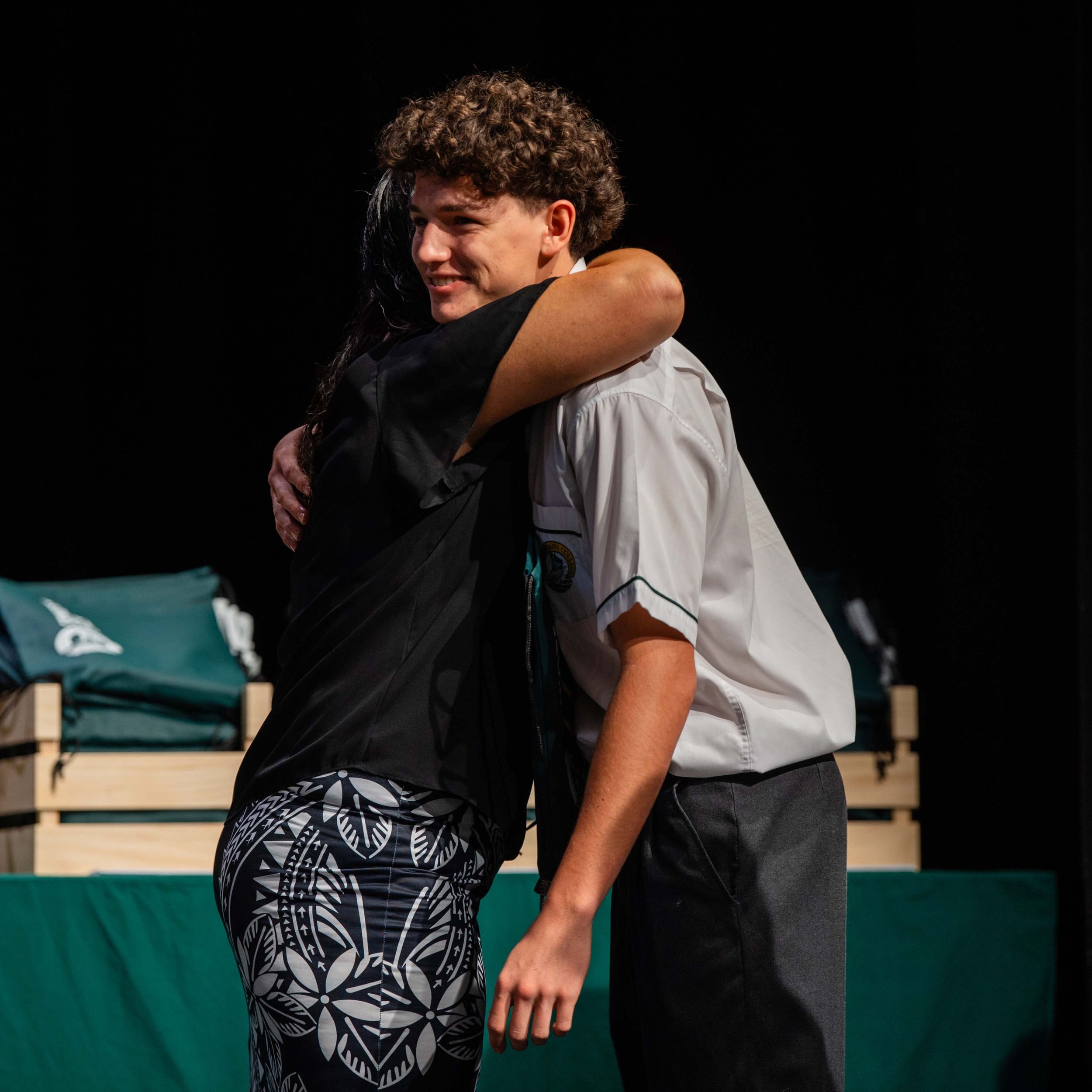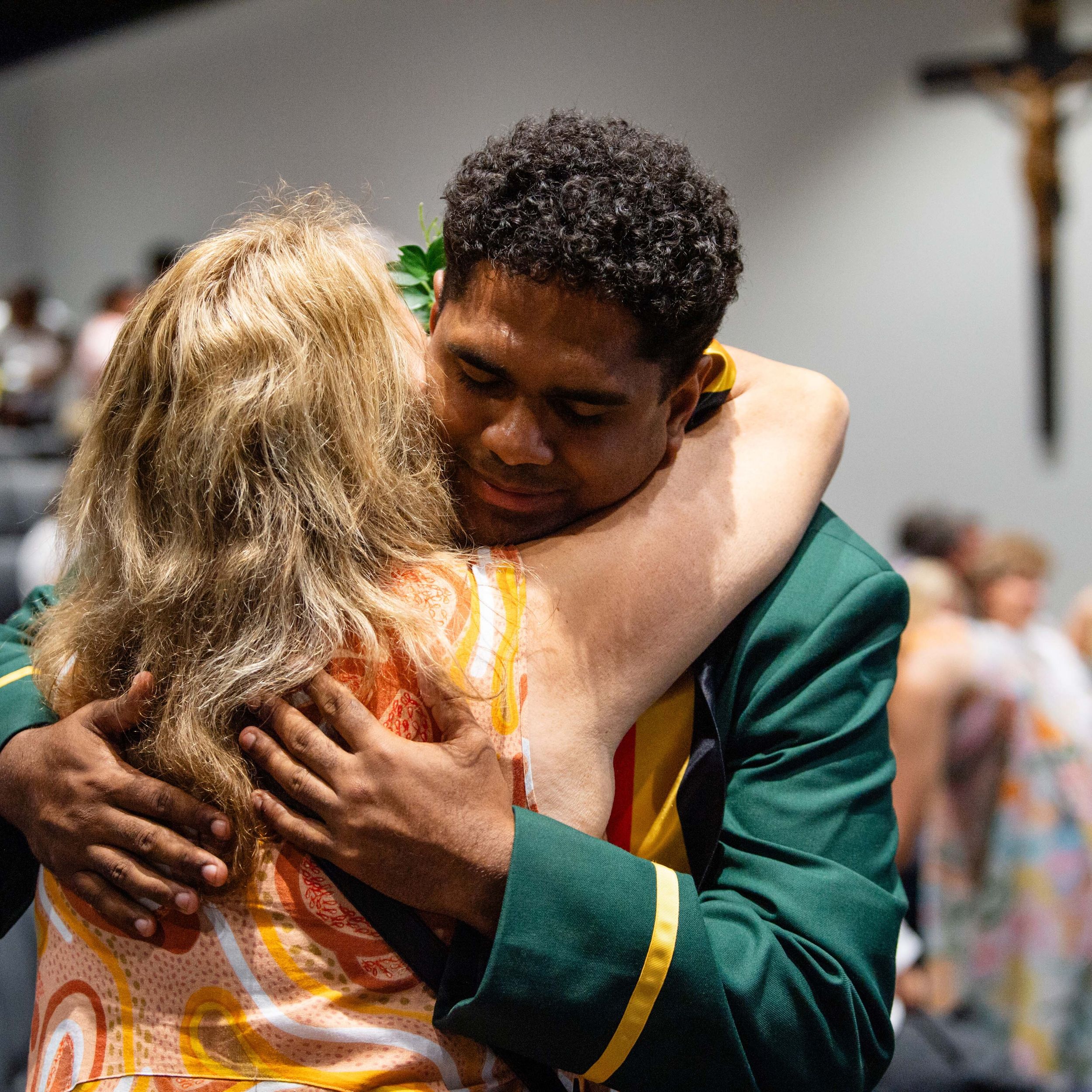 Behind every great young man is a strong, supportive mum. Cameron Da Forno shares a heartfelt hug with Michelle Da Forno after the Valedictory ceremony.