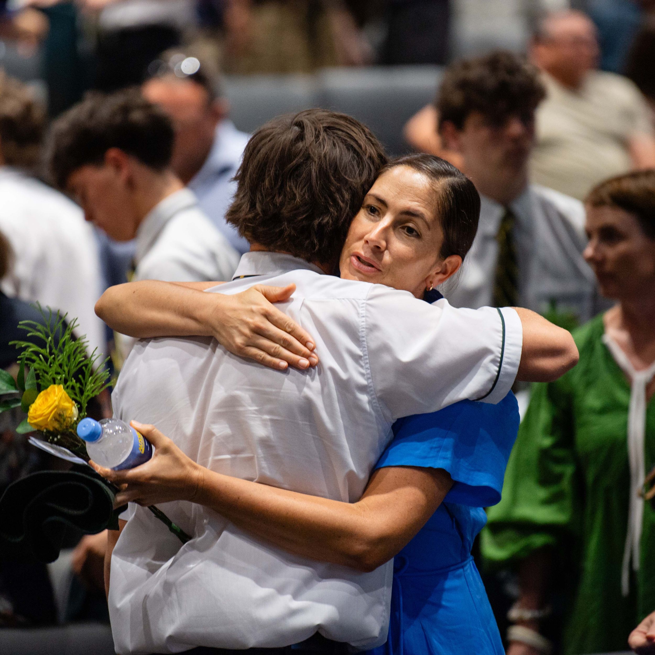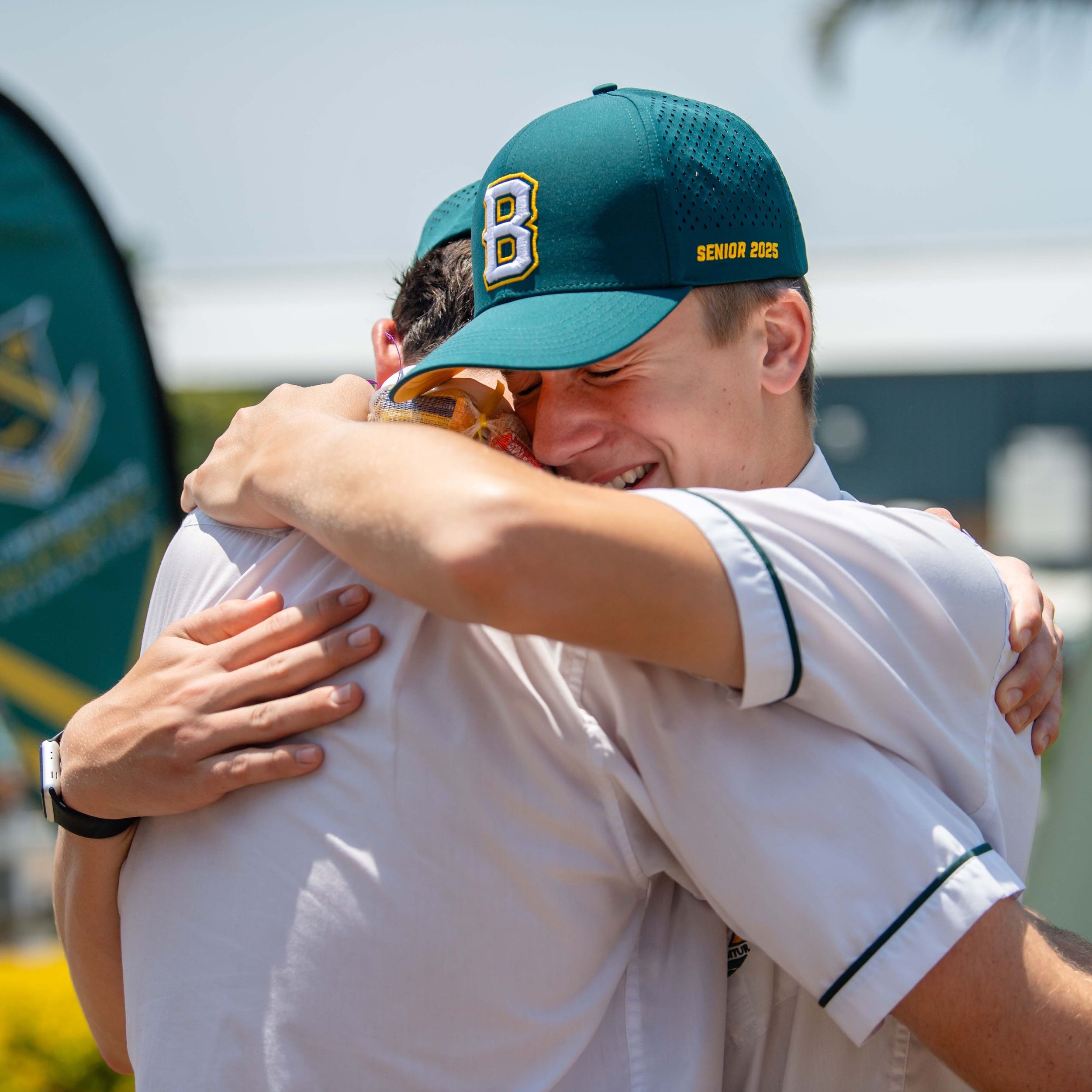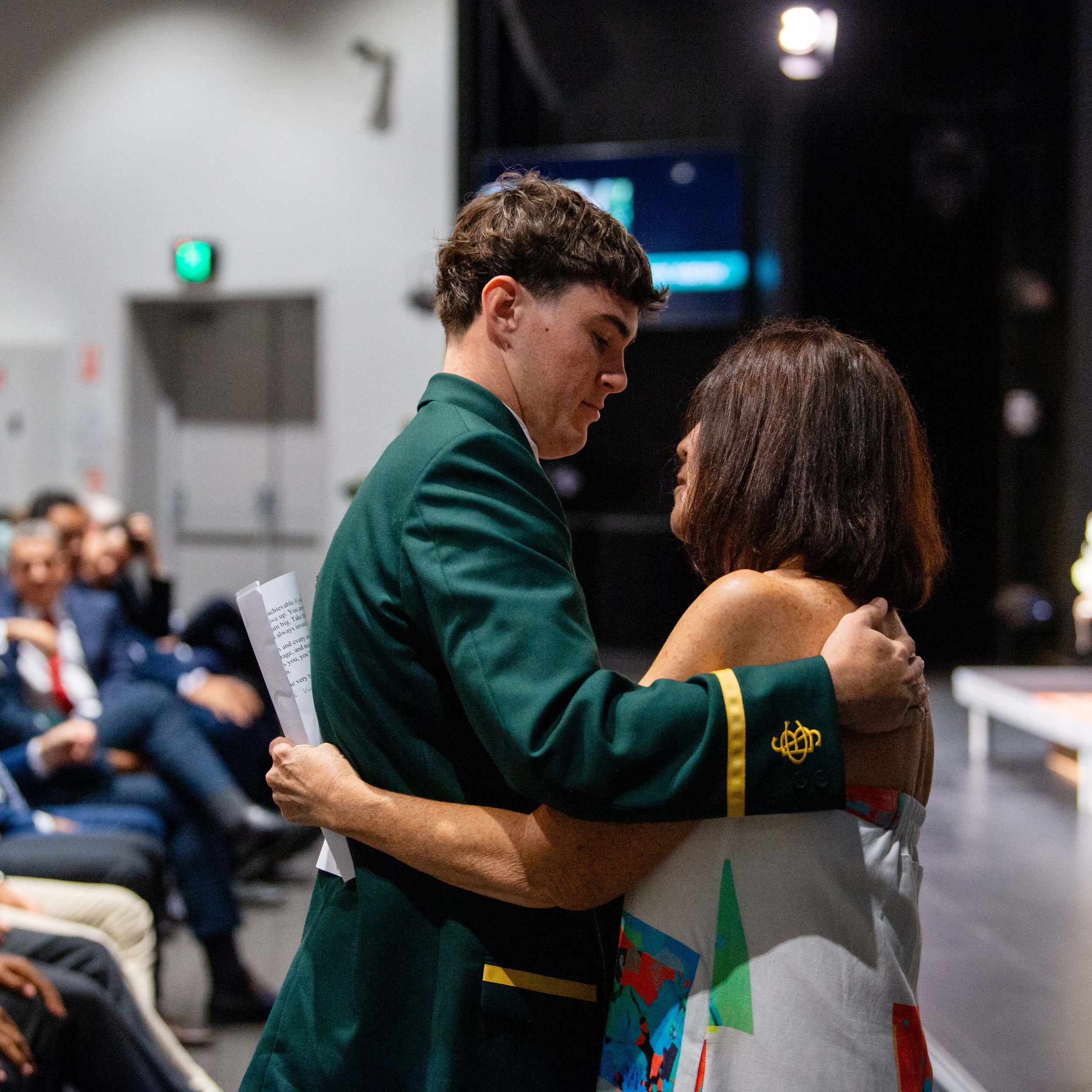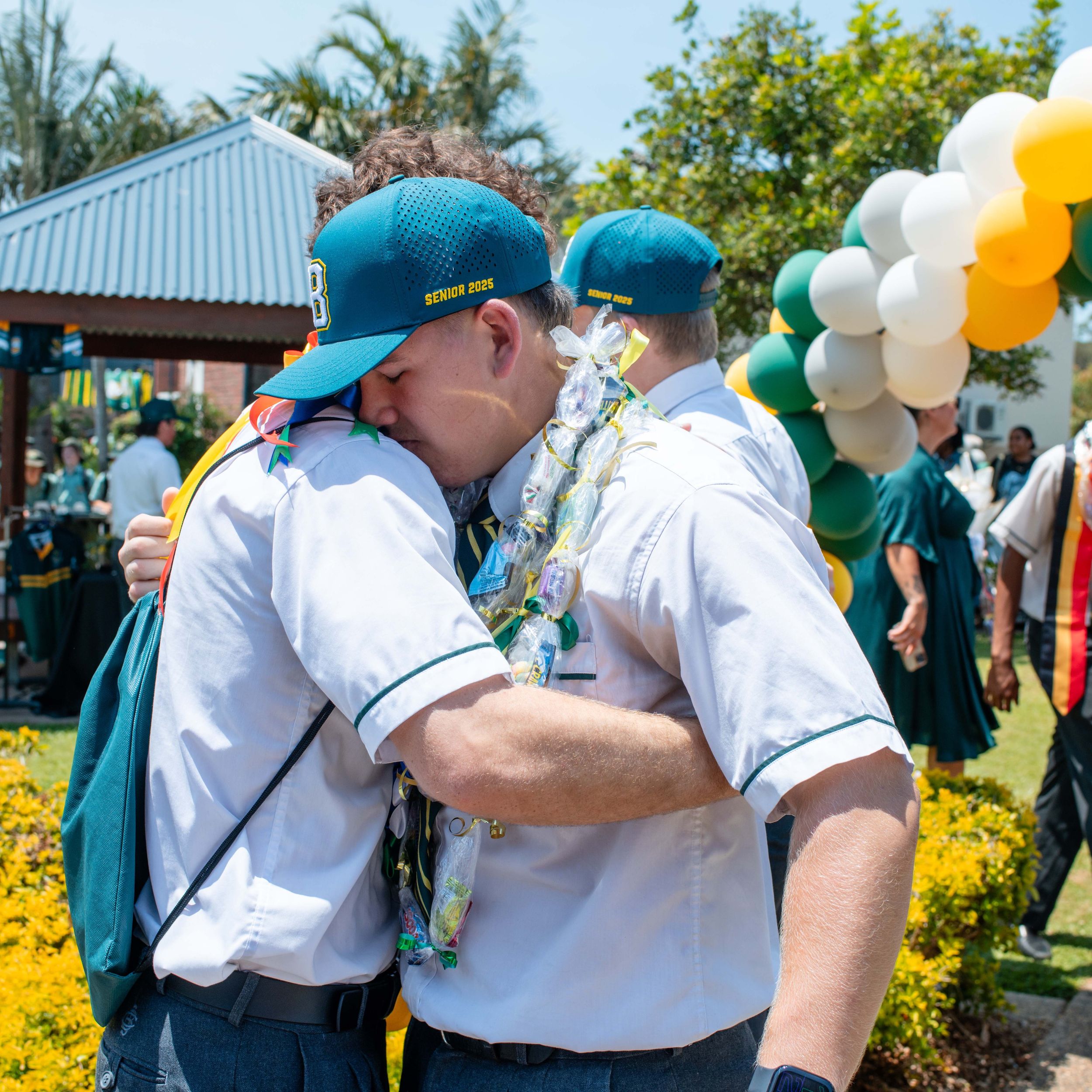 Behind every great young man is a strong, supportive mum. Cameron Da Forno shares a heartfelt hug with Michelle Da Forno after the Valedictory ceremony.