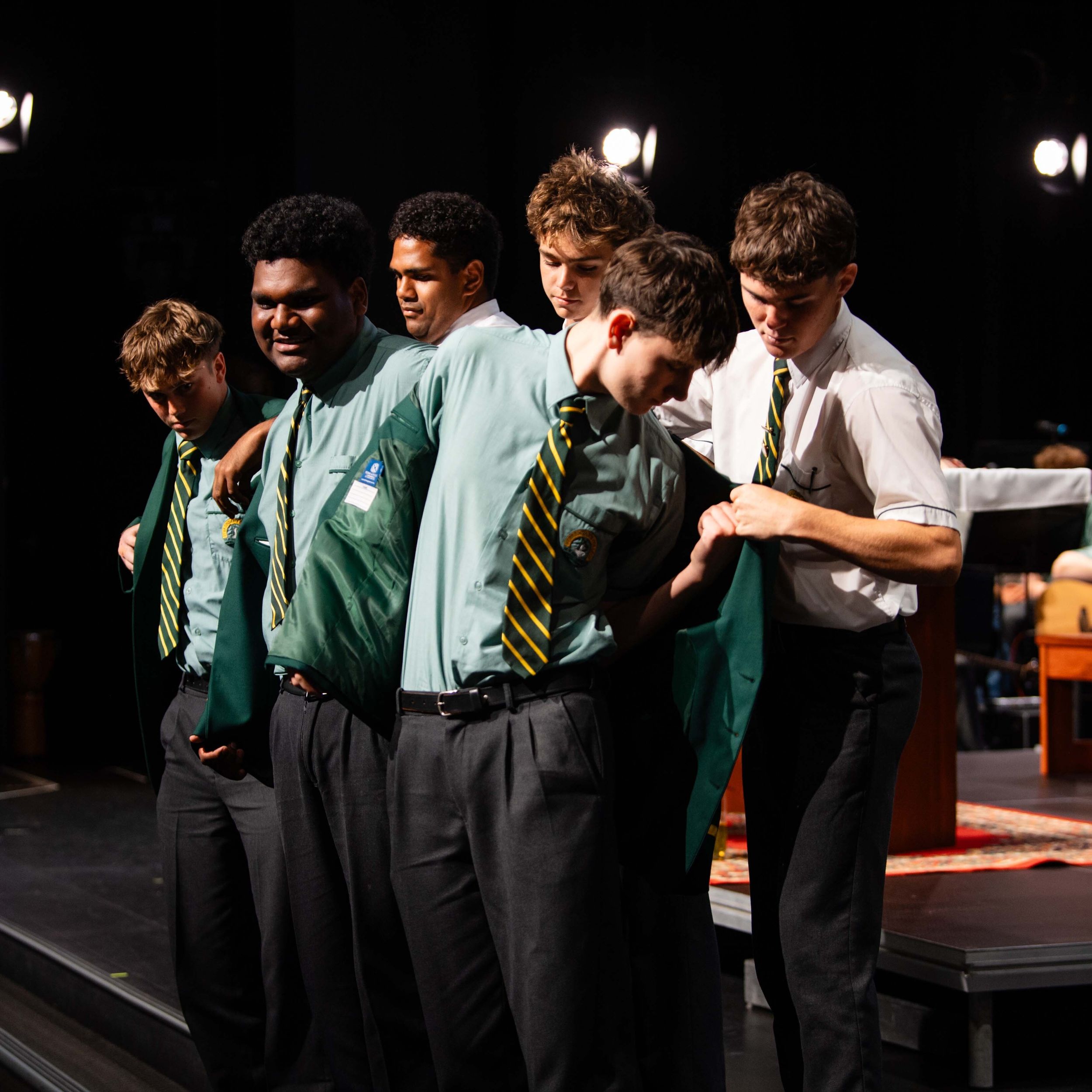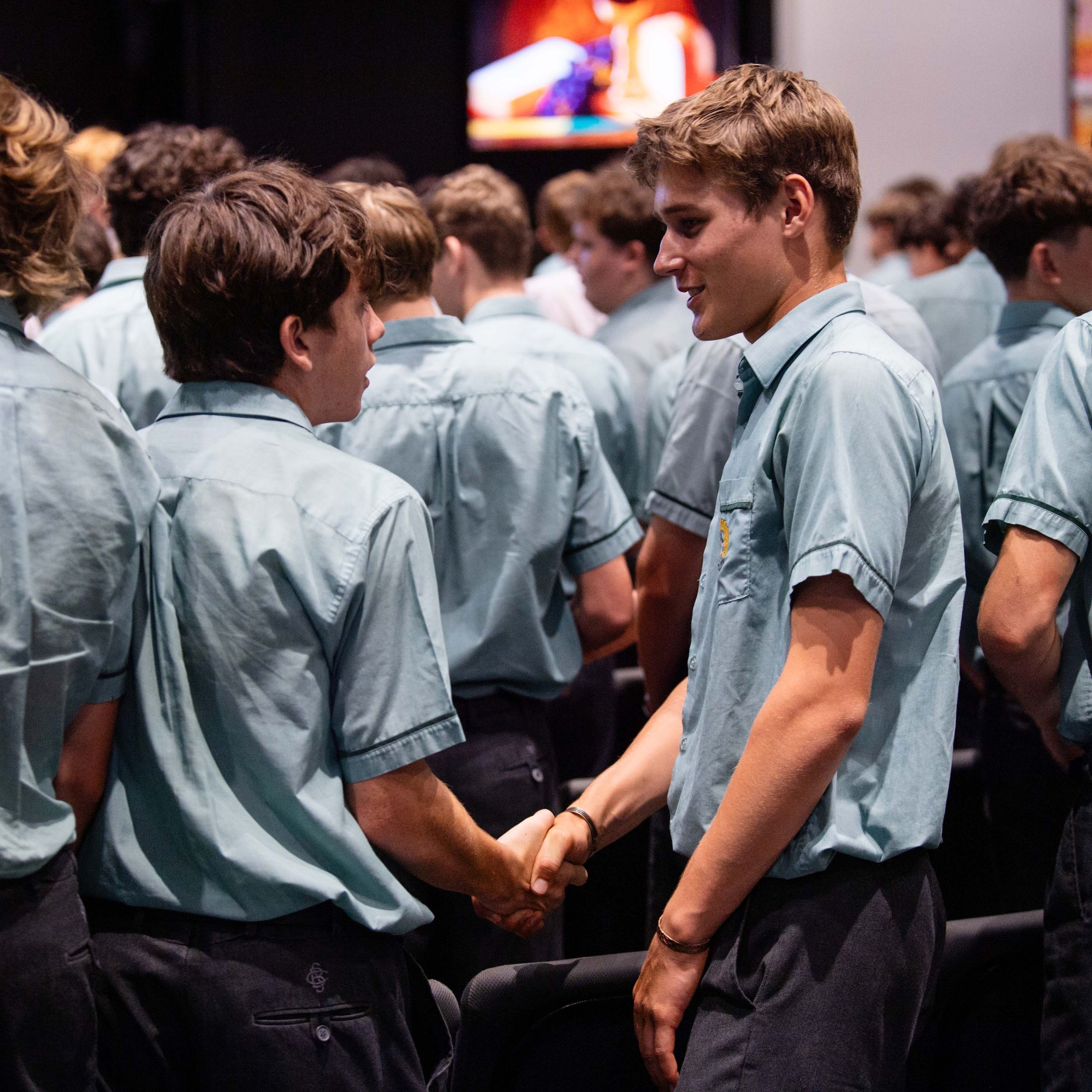 A moment rich in tradition: outgoing leaders entrusted their jackets to the next generation, symbolising the strength and legacy of leadership at St Brendan’s College.