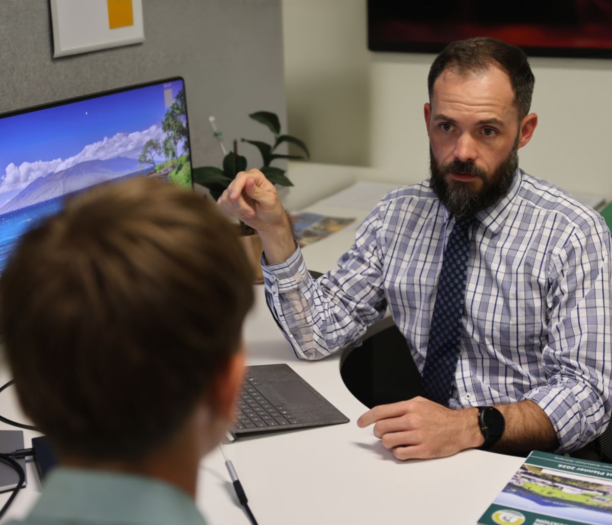 Collecting meaningful insights — Dr Carron working with a student on one of the College’s wellbeing and performance surveys.